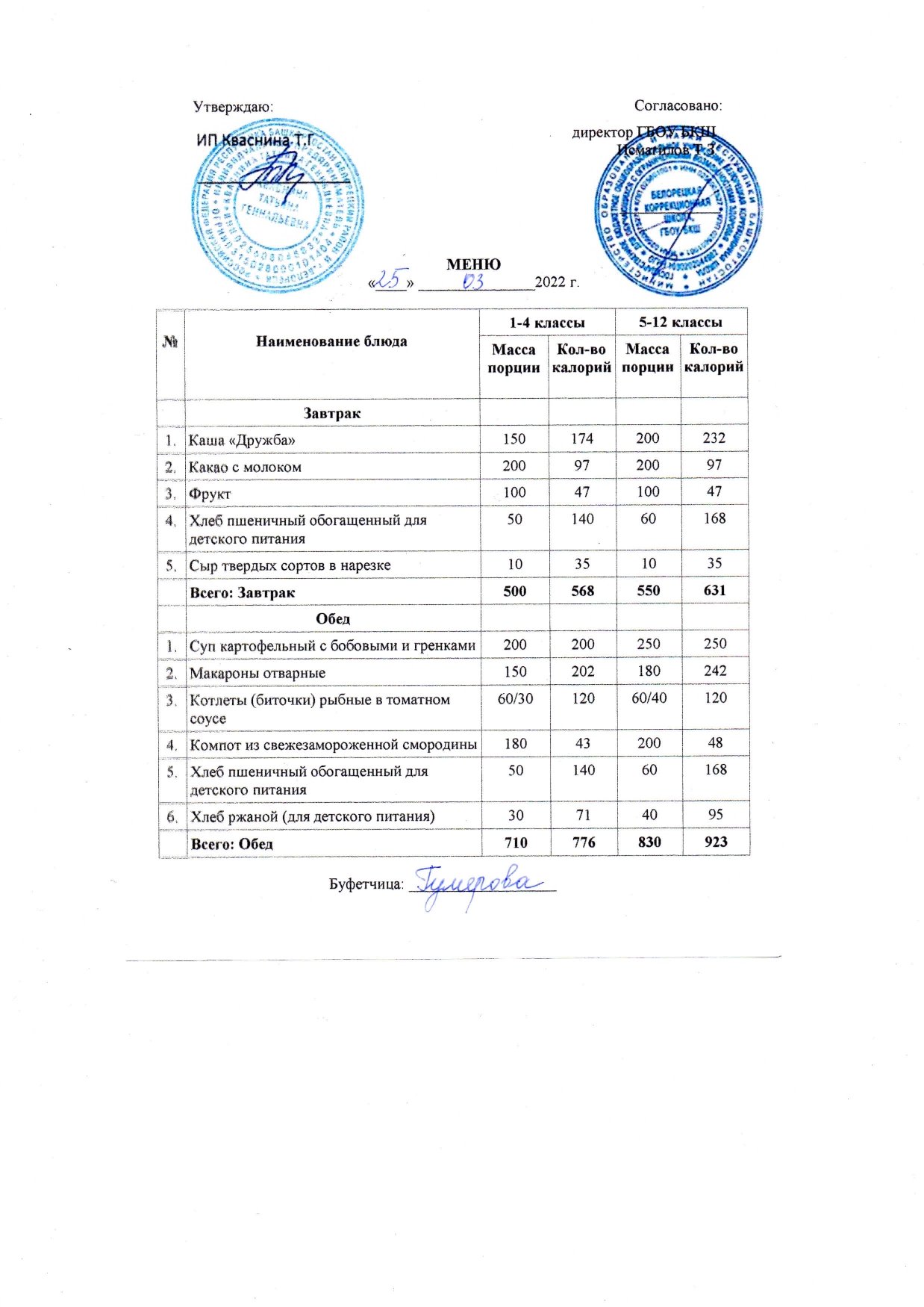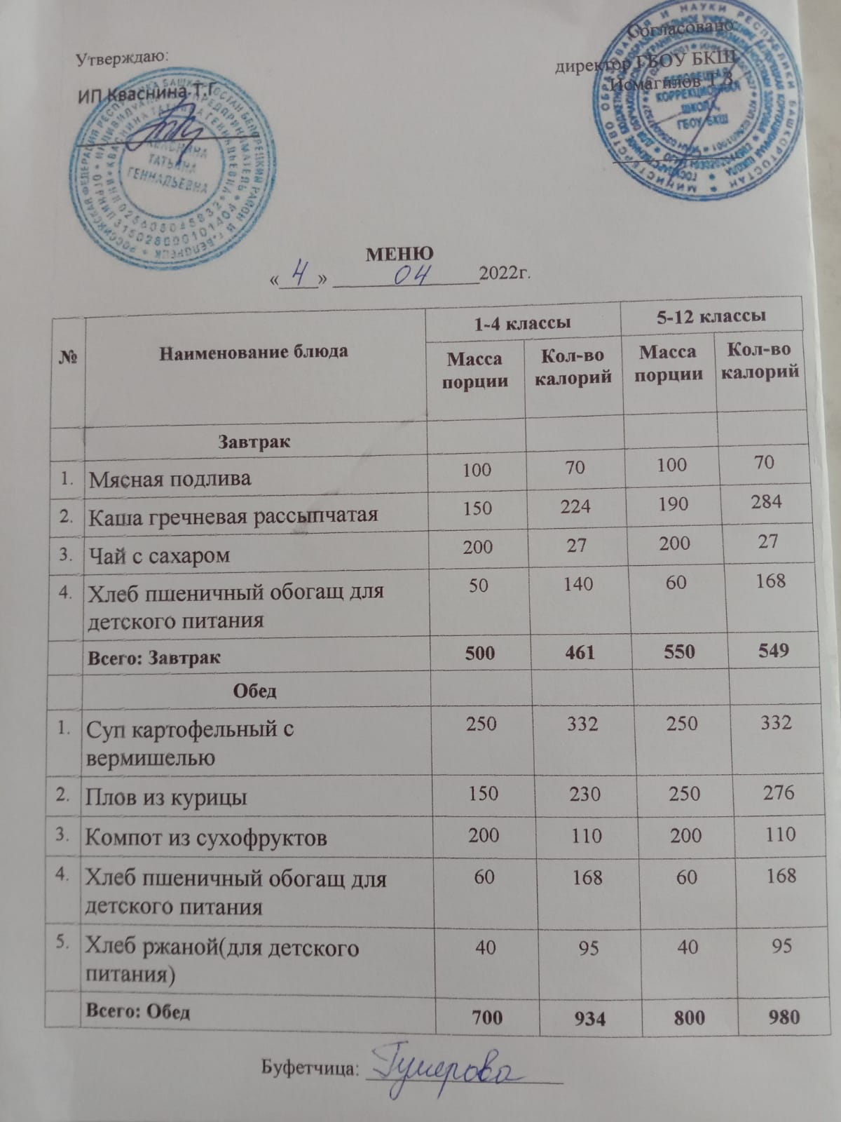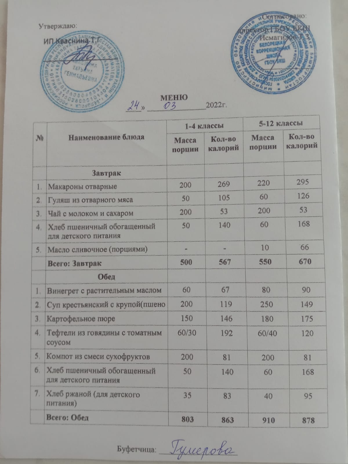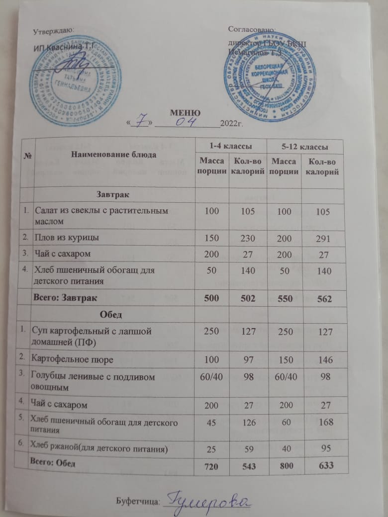 Стоимость школьного питания