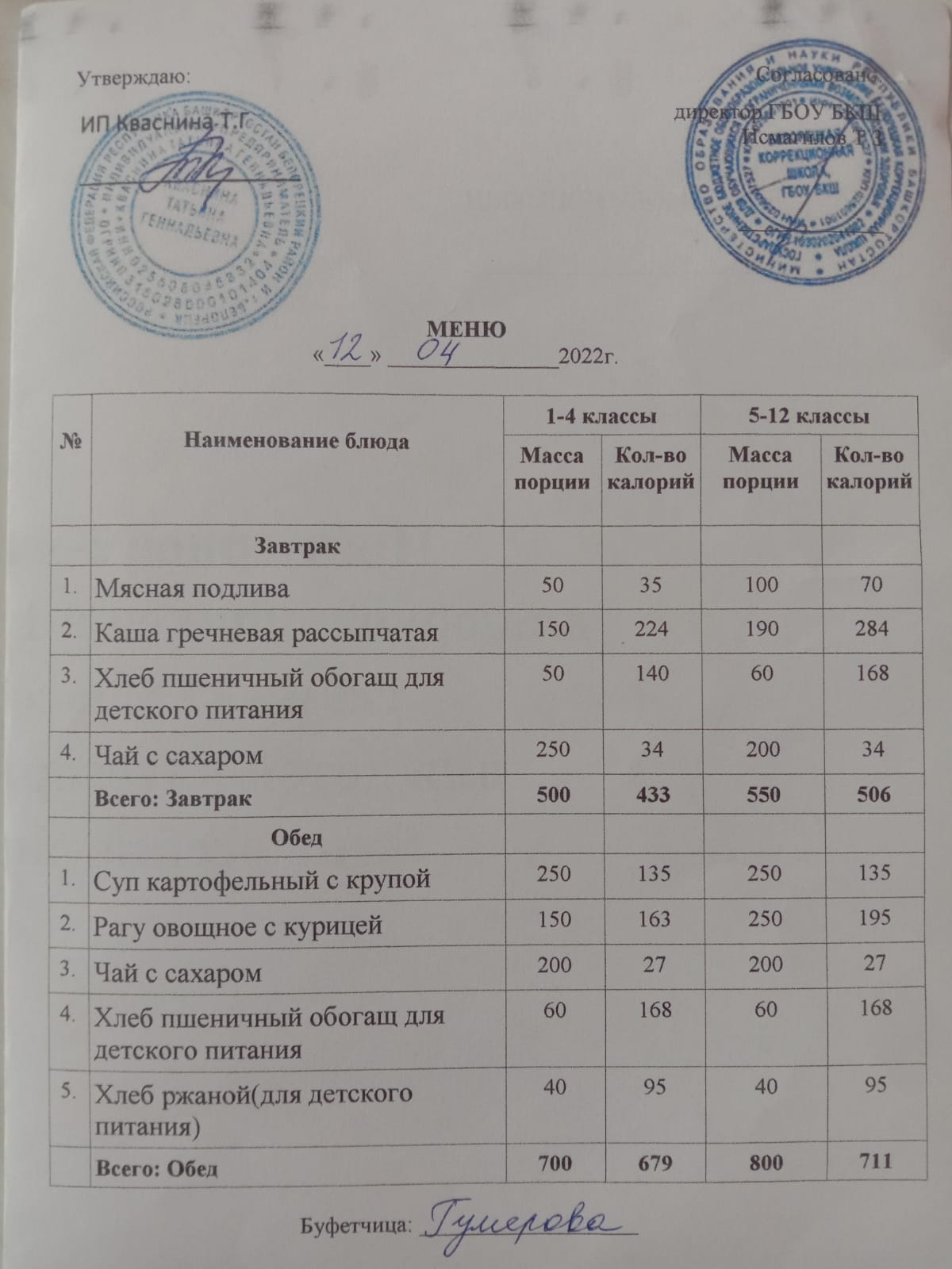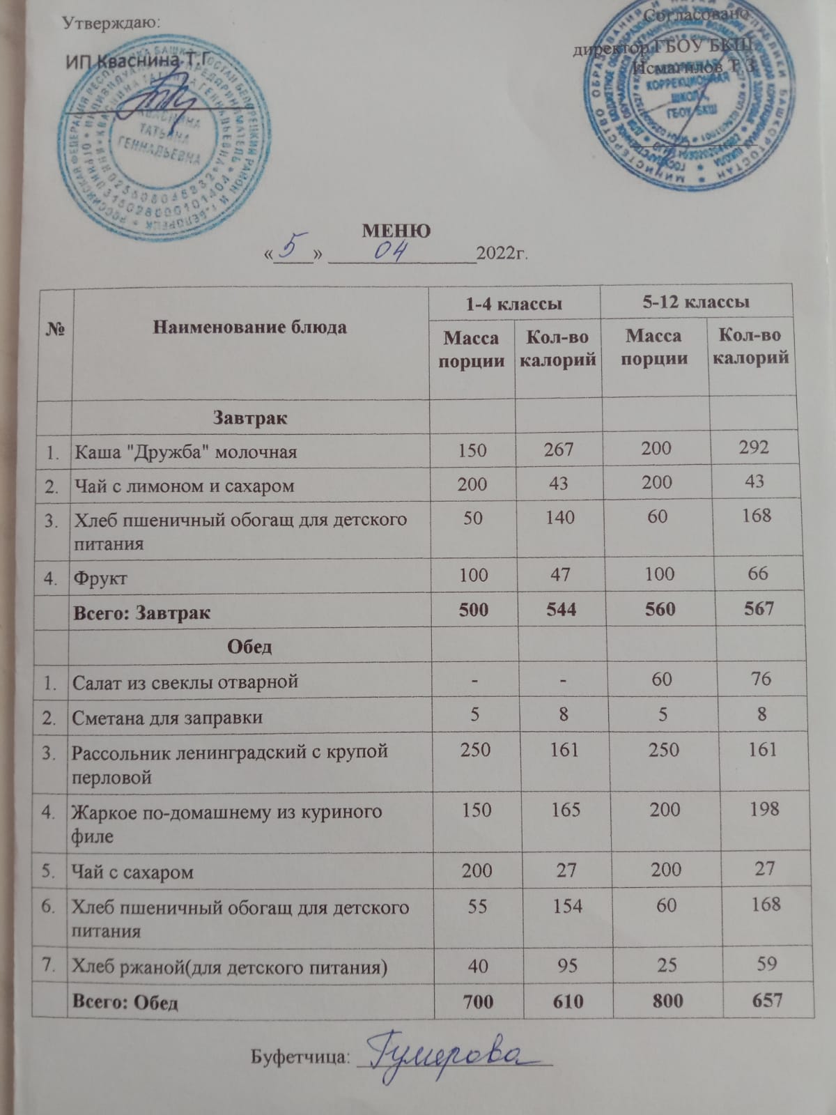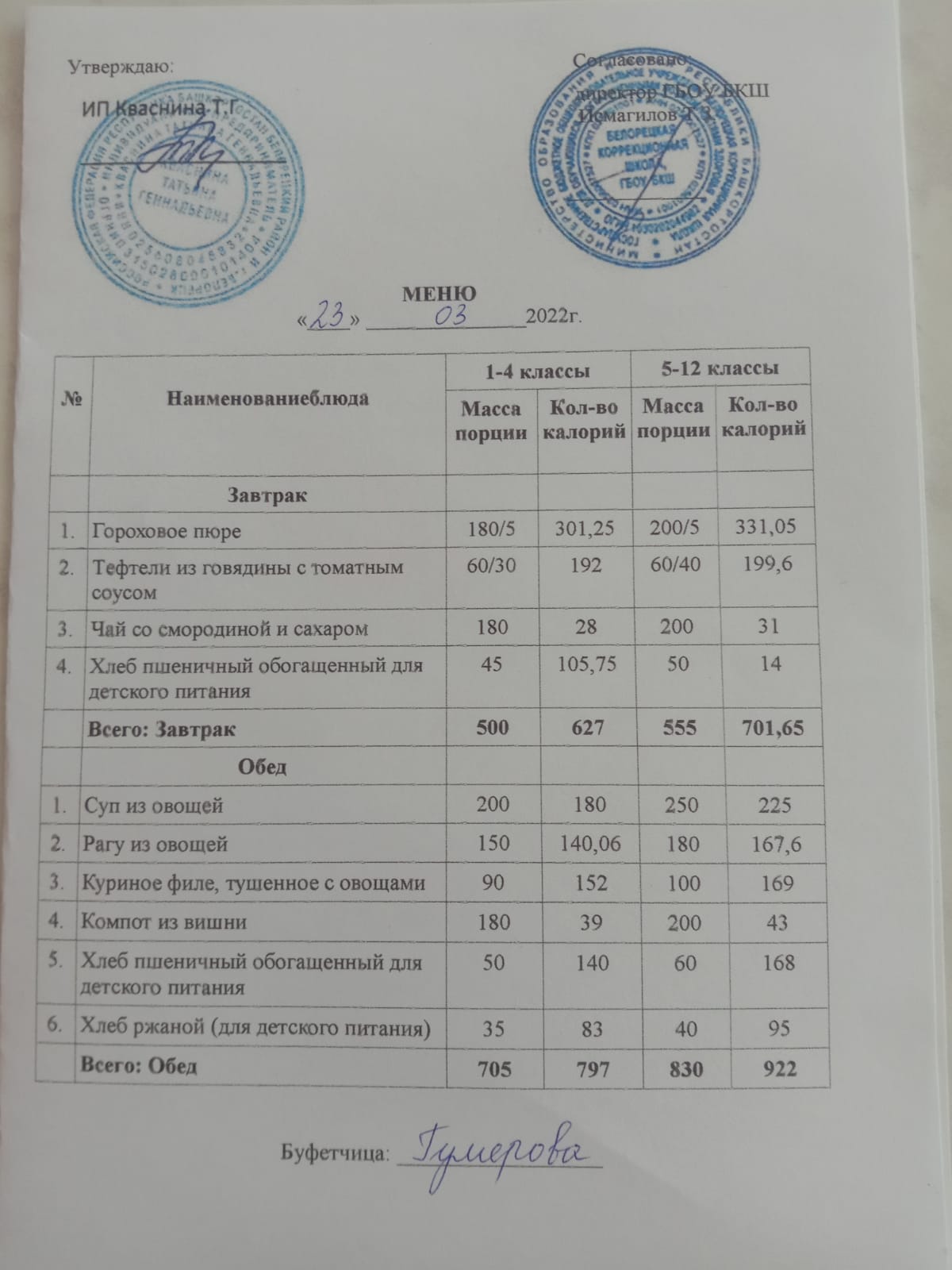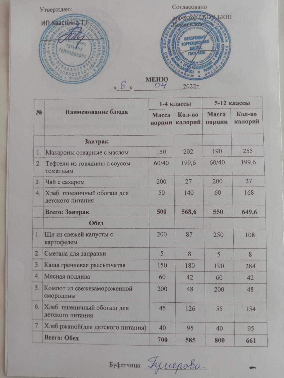 Стоимость школьного питания